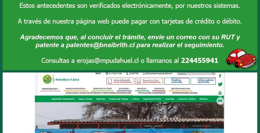 Como en años anteriores, B’nai B’rith Chile invita a sumarse a la campaña Permisos de Circulación 2018. En esta ocasión, al igual que el año pasado, nuestra contribución va destinada a la Municipalidad de Pudahuel.