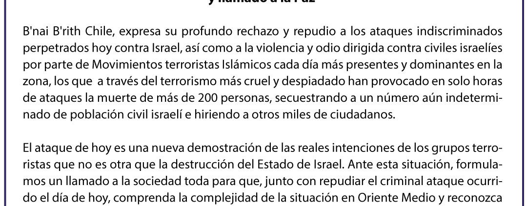 https://bnaibrith.cl/wp-content/uploads/2023/10/BNAI_BRITH.jpg10801080directorhttps://www.bnaibrith.cl/wp-content/uploads/2021/02/BBChile-azul-Horizontal-300x98.pngdirector2023-10-07 11:16:002023-10-10 21:22:16Comunicado de B'nai B'rith Chile en rechazo a los ataques indiscriminados y llamado a la Paz